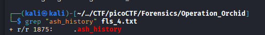 icat -o 411648 disk.flag.img 1875 > ash_history.txt