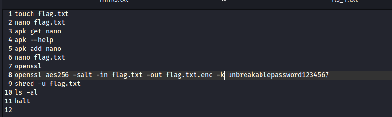 As you can see, the hacker used aes256 algorithm to encrypt the flag. Knowing this, we do: